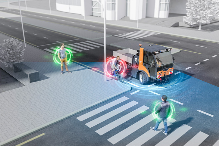 Zukunftsfähige Kommunaltechnik muss nicht nur effizient, sondern auch sicher sein. Denn der Einsatz in Städten und Wohngebieten stellt Fahrer von Kommunaltechnikmaschinen immer wieder vor herausfordernde Verkehrssituationen. Systeme wie der neue Abbiegeassistent von Hako unterstützen den Fahrer im Arbeitsalltag und helfen, potenzielle Gefahrensituationen zu vermeiden.