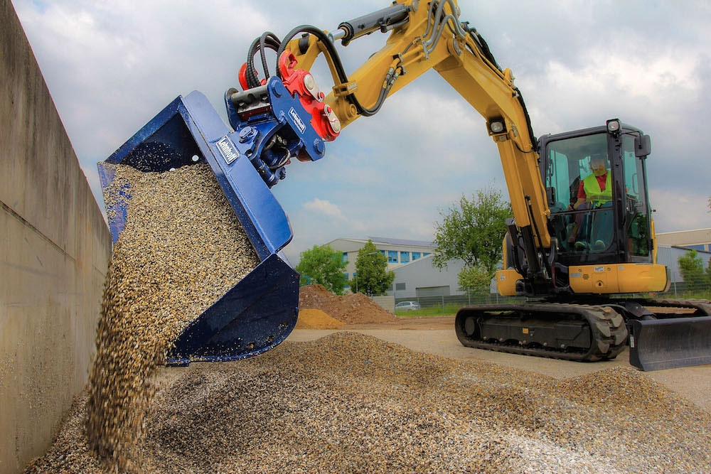 Um für wirklich jede nur denkbare Baustellenherausforderung die richtige Antwort – sprich das richtige Anbaugerät – zu haben, finden sich im Anbaugeräteprogramm für Mini- und Kompaktbagger auch Sortierlöffel, die zum Trennen von Grob- und Feinmaterial zum Einsatz kommen. Beim Lösen von Fels, Gestein und Böden leistet der bionische Reißzahn von Lehnhoff gute Dienste. Für den Einsatz an Rotatoren und Tiltrotatoren hat Lehnhoff einen speziellen Planierlöffel mit abgeschrägten Seitenwänden im Programm, außerdem ist auch eine Gabelstaplereinrichtung lieferbar.