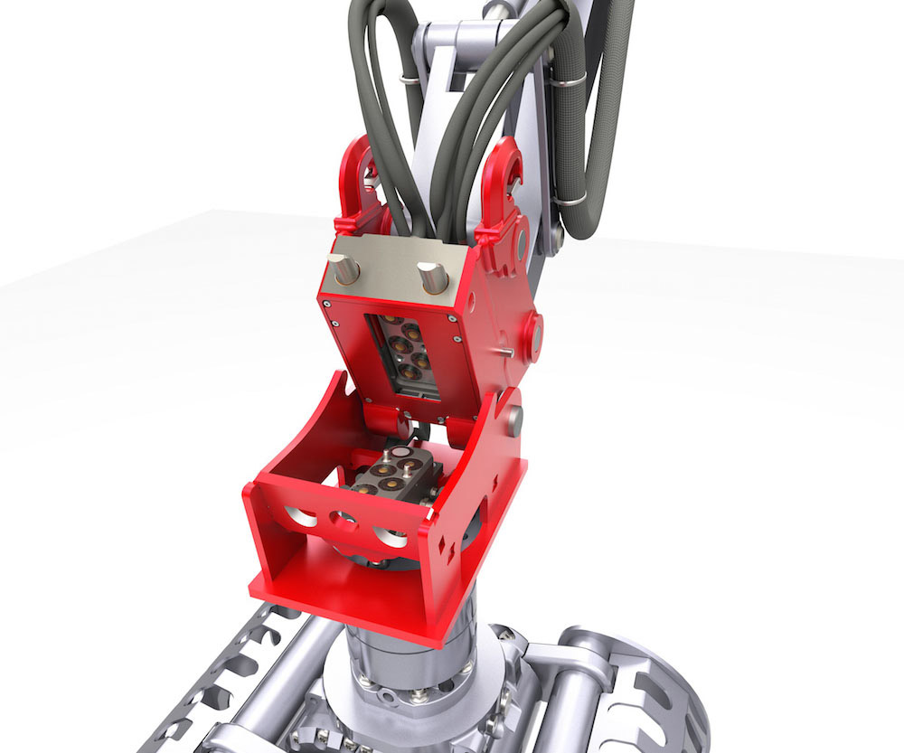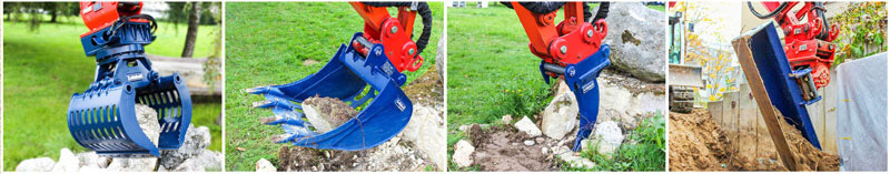 Der Fahrer wechselt bequem per Knopfdruck von der Kabine aus alle Werkzeuge samt ihrer hydraulischen Verbindung. Für den Bereich der Mini- und Kompaktbagger von 1,5 bis 6 Tonnen ist im Sortiment die VL 30 vorhanden, für größere Modelle von 6 bis 12 Tonnen wird die VL 80 verwendet. Der Maschinenführer kann zum Beispiel im ersten Schritt mit dem schwenkbaren Grabenräumlöffel einen Graben anlegen, dann sofort zum Abbruch- und Sortiergreifer wechseln, ohne dabei die Kabine verlassen zu müssen. Schnell sind damit Steine aufgenommen und können an die gewünschte Stelle transportiert werden. Sollte dann außerdem noch ein Baumstumpf oder Fundament im Weg sein, erfolgt der Wechsel auf den Reißzahn oder den Hydraulikhammer, die für freie Wege sorgen.