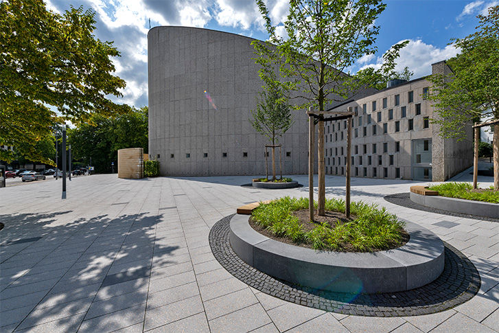 areals von St. Gregorius in Aachen kam ein der Kirchenfassade angepasster Grau-Beige-Ton im Sonderformat 60 x 30 cm zum Einsatz. Das Gestaltungspflaster lässt sich sowohl im Halbverband wie auch im Drittelversatz verlegen.
