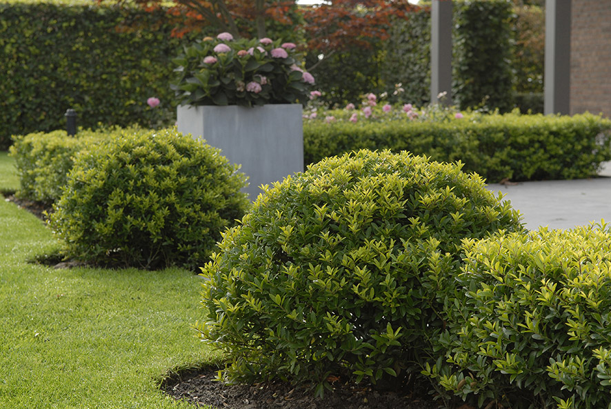 Unter allen Formpflanzen ist Buxus in vielen Arten und Sorten seit Jahren das stärkste Produkt, aber auch die Nachfrage nach buchsähnlichen Produkten ist in den letzten Jahren stetig gestiegen. Einer der stark nachgefragten Artikel ist Ilex crenata, besonders die Serie Ilex crenata Select(R). Zu diesen ausgewählten und geschützten Sorten gehören Ilex crenata ‘Dark Green’, Ilex crenata ‘Blondie’ und Ilex crenata ‘Dark Star’, allesamt schnittverträglich, frosthart und mit hervorragenden Wuchseigenschaften. Sie eignen sich sehr gut für blickdichte Hecken und Solitäre.