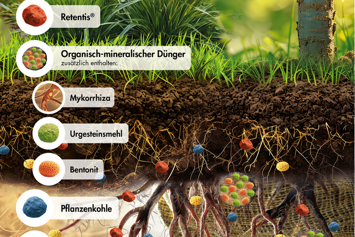 Als Siedlungsraum für Mikroorganismen ist unter anderem Bentonit enthalten, dass je Gramm eine innere Oberfläche von 600 m² aufweist. Die Bestandteile fördern den Humusaufbau im Boden und fördern die Wasser- und Nährstoffhaltefähigkeit. Das Ganze ist mit einem natürlichen Dünger aufgedüngt und zusätzlich mit Mykorrhiza versehen, die dem Baum einen größeren Wurzelraum erschließt. Perlite belüftet den Boden und wirkt dauerhaft einer Bodenverdichtung entgegen und verhindert dabei das Stau-nässe entsteht.