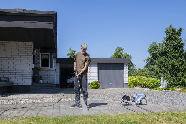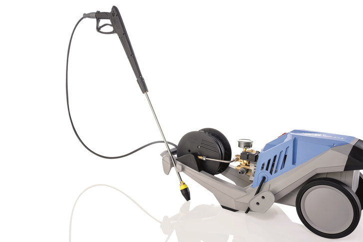 Auch bei Transport und Handhabung überzeugt das neue Modell mit durchdachten Details: Ein höheres Chassis und große, geländegängige Räder erleichtern das Ziehen des Geräts. Die Gummierung im Griff – bekannt aus der Kränzle Quickly-Serie – sorgt auch bei nassen Händen für sicheren Halt. Wie sein Vorgänger wird der K 1154 TST ebenfalls liegend betrieben. Das verbessert die Stabilität, schützt das Gerät vor Beschädigungen und gewährleistet eine optimale Schmierung des Getriebes. Für einen einfachen Transport und zur platzsparenden Lagerung wird er aufrecht gestellt.