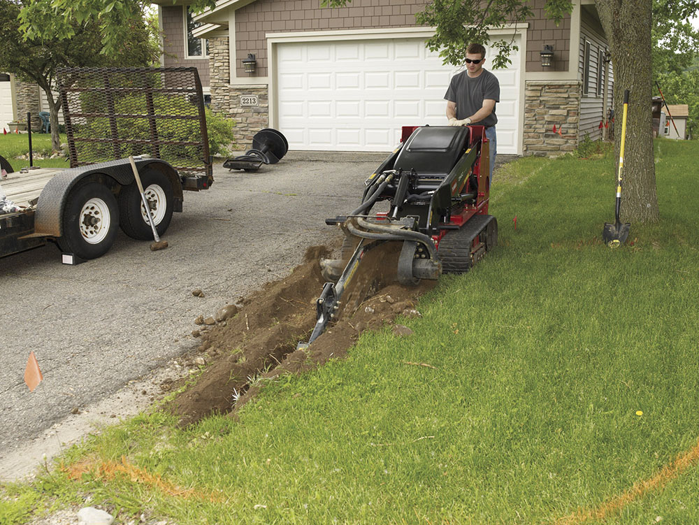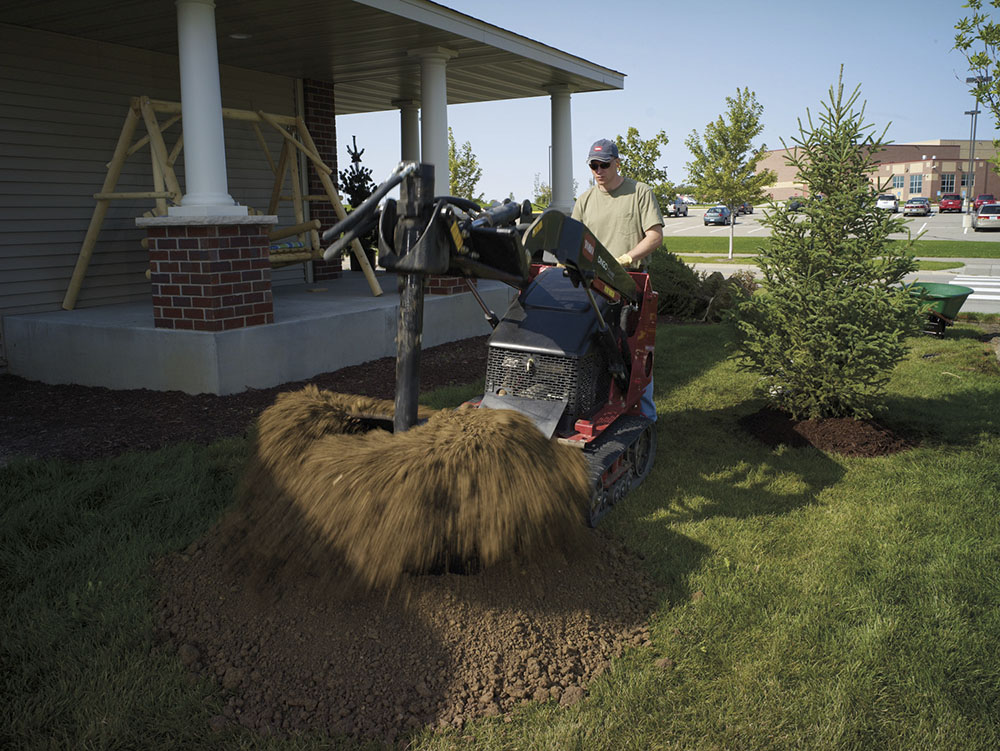 Der bärenstärke Alleskönner passt sich nicht nur dem Aufgabengebiet an, sondern auch den spezifischen Anforderungen jeden GaLaBauers, denn es gibt ihn in sechs Ausführungen: als Schmalspur-oder Breitspur-Raupenfahrzeug sowie mit schmaler oder normalbreiter Bereifung, wahlweise jeweils mit leistungsstarkem Kubota-Diesel- oder Kohler-Benzin-Motor. In jedem Fall ist der Dingo mit seinem handgeführten Design einfach und sicher in der Anwendung, dafür sorgt das intuitive und ergonomische Bedienfeld, das die Steuerung der Geschwindigkeit im Vorwärts- und Rückwärtsgang sowie das Bewegen des Maschinenarms per Joystick gleichzeitig ermöglicht. Damit steigert der Dingo die Produktivität selbst von unerfahrenen Bedienern. Genaue Kontrolle und präzisen Einsatz gewährleistet zudem der stets freie Blick auf die beweglichen Teile der Anbaugeräte.