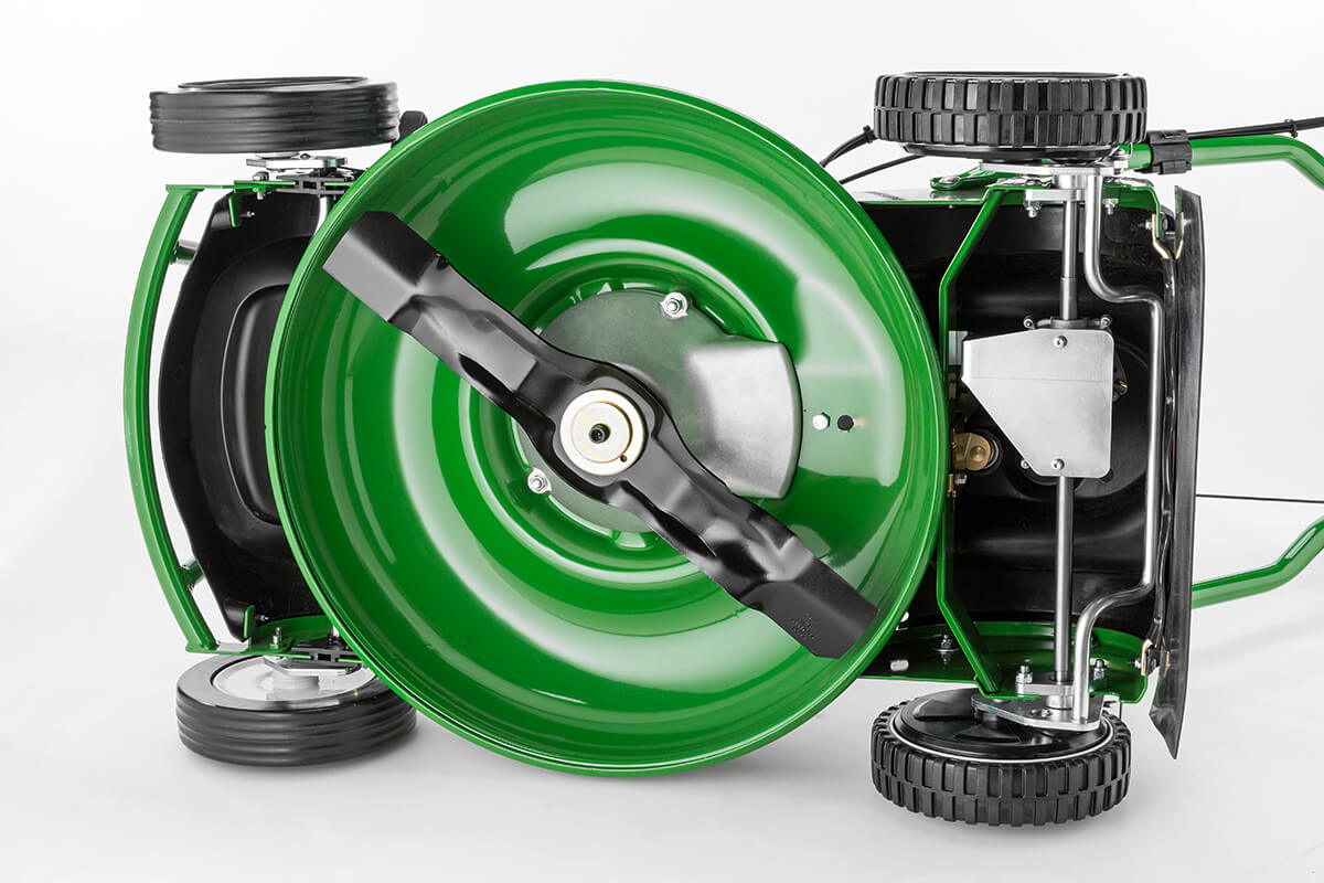 Durch die Verteilung des feinen Rasenschnitts direkt beim Mähen entfällt die Entleerung eines Fangsacks. An den Hinterrädern angebrachte Radabstreifer sorgen dafür, dass der Grünschnitt nicht an den Rädern haften bleibt, sondern sich gleichmäßig auf dem Rasen verteilt. Der zuschaltbare Vario-Antrieb erhöht den Komfort beim Mähen: Damit kann die Fahrgeschwindigkeit des Mähers am Führungsholm eingestellt und zwischen 2,6 und 4,1 km/h an die persönliche Schrittgeschwindigkeit angepasst werden. Das serienmäßige AntiVibrationSystem™ ermöglicht ermüdungsfreies Arbeiten – selbst bei langen Mäheinsätzen. Ein robuster Kurbelwellenschutz verringert das Risiko eines Motor- oder Kurbelwellenschadens beim Auftreffen des Messers auf ein Hindernis.