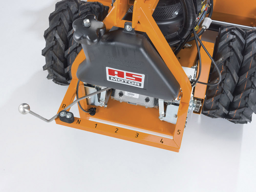 Dabei ist kaum eine Herausforderung zu groß für den AS 901 SM: Seine Einzelrad-Lenk- und Bremskupplungen, das 5-Gang-Schaltgetriebe mit Differenzialsperre sowie die Agrarprofil-Doppelbereifung sorgen für beste Traktion und Bremswirkung am Hang und in unwegsamen Gelände. „Wenn man den Lenker loslässt, bleibt der Mäher einfach stehen. Wie alle Geräte von AS-Motor ist auch dieser Schlegelmäher dafür prädestiniert, Steilhänge sicher abzumähen. Der Steinschlagschutz bewahrt den Geräteführer zudem vor aufgewirbelten Fremdkörpern, ohne dabei die Sicht zu behindern“, erklärt Kinnast.