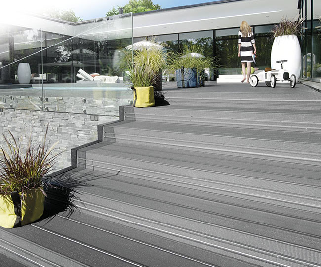 Die patentierte 2-in-1-Lösung UPM ProFi Rail Step gewährleistet schöne Terrassenstufen mit widerstandsfähigen Kanten. Dank der einzigartigen L-Form lassen sich die Profile ganz einfach und schnell verlegen und sorgen für perfekte, präzise Treppen. UPM ProFi Rail Step ist die ideale Lösung zur Anwendung im Freien – für öffentliche Parks, Yachthäfen und Restaurants, deren Terrassen widerstandsfähige Kanten erfordern.