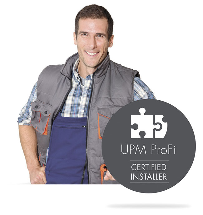 Das UPM ProFi Programm für zertifizierte Verleger dient dem Vertiefen von Standardvorgehensweisen und dem Erlernen erweiterter Verlegetechniken für ausgebildete Verleger. UPM empfiehlt, dass die Verlegung stets von einem zertifizierten Verleger von Terrassendielen aus Verbundstoffen durchgeführt wird. Das Programm richtet sich zudem an interessierte Hausbesitzer und Projektplaner, die einen zertifizierten Verleger von Terrassendielen aus Verbundstoffen suchen.