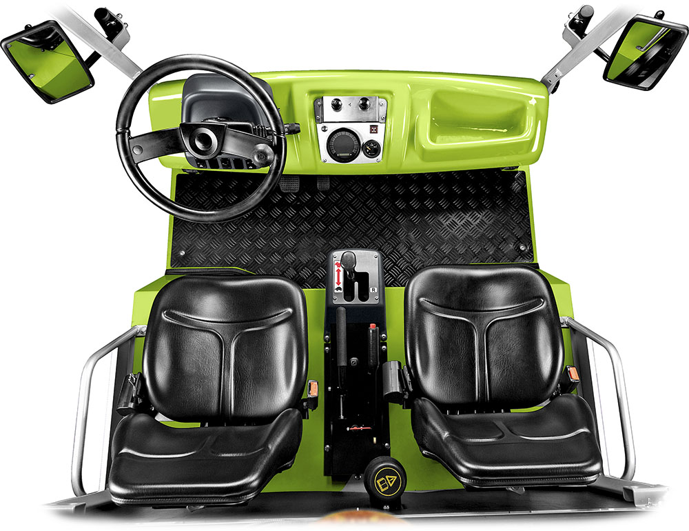 Die Fahrerkabine ist mit Handgriffen, Sicherheitsgurten und einem Dokumentenfach ausgestattet. Die maximale Nutzlast beträgt 900 kg. Der positive Pol der Batterie befindet sich auf dem äußeren Rahmen der Maschine. Zwischen den Sitzen in der Kabine ist ein Metallhebel, um eine Trennung von der Batterie zu ermöglichen.
