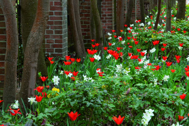 Beete bestehen oft aus einer Grundbepflanzung mit Stauden. Diese können auf verschiedene Weise mit Blumenzwiebeln ergänzt werden, um im Frühling einen fröhlichen Farbakzent zu setzen. Die bestehende Bepflanzung der Beete wird durch Blumenzwiebeln ergänzt, die für eine mehrjährige Blüte geeignet sind. So wird der Kauf und die Pflanzung von Blumenzwiebeln zu einer Investition für mehrere Jahre. Für die richtige Wahl des Sortiments sollten Sie zunächst die Blütezeiten und Farben der Staudenbepflanzung berücksichtigen. Mit diesen Daten ist es möglich, eine schöne “Blumenzwiebel-Sauce“ über das Beet zu gießen. Mischen Sie die Blumenzwiebeln in der Schubkarre und streuen Sie sie unter die Stauden. Pflanzen Sie die Zwiebeln dort ein, wo sie hingefallen sind. Sie können mit den Blumenzwiebeln nicht nur die Blütezeit früher beginnen lassen, sondern auch schöne Farbkombinationen zwischen früh blühenden Stauden und Tulpen schaffen. Vergessen Sie nicht, Akzente mit verschiedenen Zierzwiebelsorten, deren Blütezeit von Mai bis September variiert zu setzen. Im Frühjahr werden Sie dann überall im Beet schöne, natürliche und farbenfrohe Blüten haben.