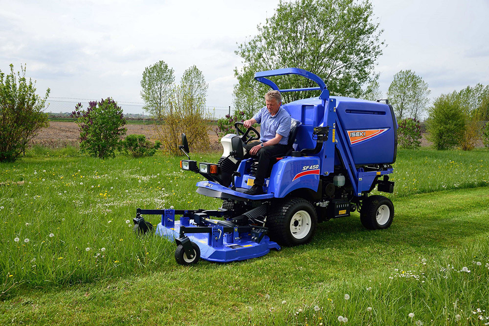 Doch auch bei Hausverwaltungen und Facility- Dienstleistern, die größere (Wohn-)anlagen betreuen, können SF-Frontdeckmäher mit Heckauswurf und 22 km/h Höchstgeschwindigkeit (Modell SF450) die effiziente Instandhaltung der großräumigen Areale sicherstellen.