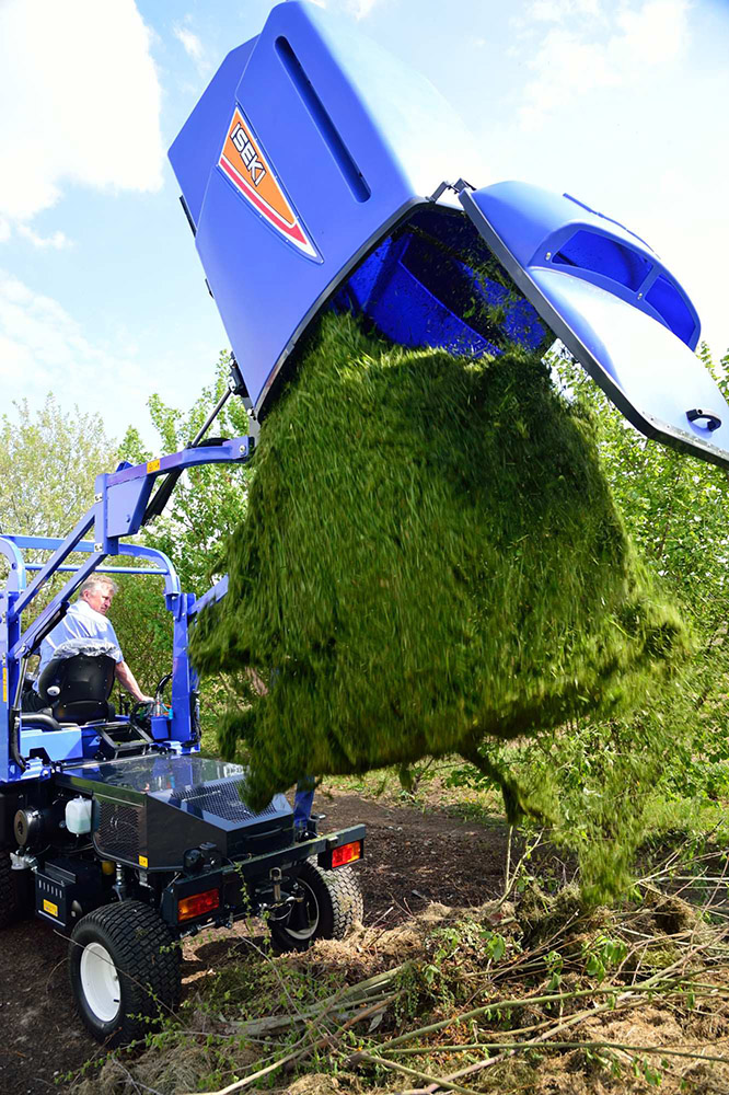 Beide Modelle sind mit einem 2-Messer-Mähwerk mit 137 oder 152 cm Schnittbreite, zentralem Heckauswurf sowie einem 1.300 l fassenden Grasaufnahmebehälter ausgerüstet. Die serienmäßige Hochentleerung ermöglicht eine Entleerungshöhe bis zu 2,10 m sowie eine Überladeweite von 380 mm. Damit lässt sich das Abladen des Mähgutes auf ein Fahrzeug zum anschließenden Abtransport in einem reibungslosen, zeiteffektiven Prozess bewerkstelligen.