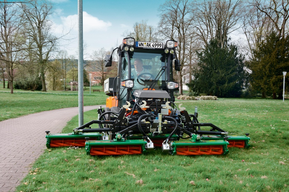 Zugleich sorgen 66 PS Leistung und ein starkes Hydrauliksystem (100 l/min) dafür, dass die Maschine auch mit schwerem Anbaugerät ausgestattet werden kann. So ist sie auch für die großflächige Grünpflege geeignet.