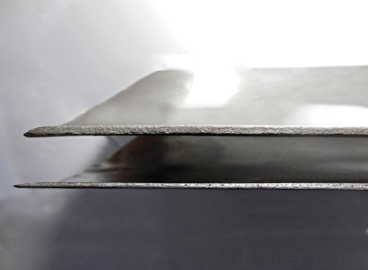 - Das geschmiedete Spatenblatt ist von der Trittkante bis zur Schneide stetig dünner werdend gearbeitet. Durch den Materialabtrag beim Graben ist die Schneide daher selbstschärfend.