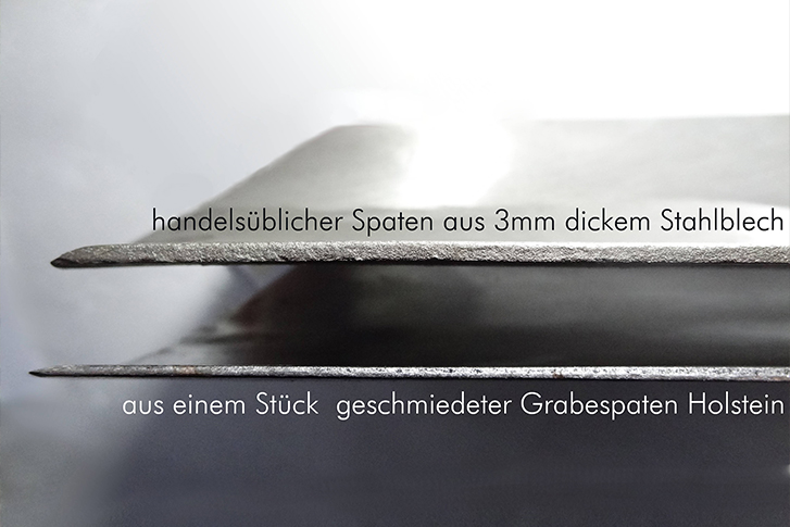 Bei der Hermann Meyer KG ist man von den Qualitäten handgeschmiedeter Spaten überzeugt. Natürlich kosten sie in der Herstellung mehr als ein Spaten, der von einer Maschine aus Stahl gewalzt wird. Aber sie haben eben auch Eigenschaften, die Walzstahl (auch da gibt es ohne Zweifel hervorragende Werkzeuge) nicht haben kann.