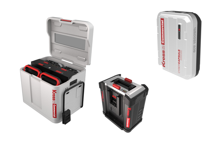 Das Akku-Managementsystem optimiert hierbei Leistung und Lebensdauer der nachfolgenden Akkus und die integrierte BlueTooth-Funktion verbindet das Gerät mit der Kress Commercial App und liefert Daten rund um den Geräteeinsatz. Der Akku KAC800 und die CyberCapsule KAC815 sind beide strahlwassergeschützt nach IPX5 und widerstehen widrigsten Bedingungen.