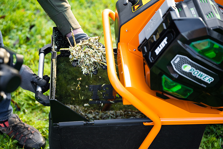 Beim Motor kann man zwei verschiedene Betriebsmodi wählen: Im ECO-Modus läuft der Häcksler langsamer und sparsamer, wodurch sich die Autonomie des Gerätes verlängert. Im TURBO-Modus wird mit voller Leistung gehäckselt, die Hackfrequenz beträgt dann 43000 Hackbewegungen pro Minute. Die dabei entstehenden feinen Hackschnipsel kompostieren schnell. Gartenliebhaber sind auch Naturliebhaber und schätzen daher die Vorteile einer batteriebetriebenen Maschine besonders. Häckseln erfolgt jetzt emissionsarm, geräuscharm und mit der vollen Flexibilität eines kabellosen Gerätes. Da ist die Entscheidung für den MAESTRO e-power schnell getroffen.