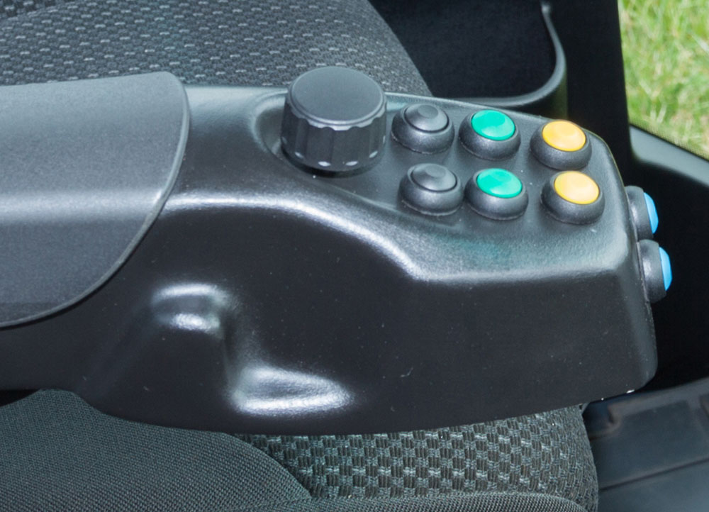 Dieses Assistenzsystem entlastet den Fahrer enorm. Um zwischen Heben und Senken zu wechseln muss er die rechte Hand nicht mehr vom Schalthebel entfernen und kann sich voll und ganz auf das Räumen und die Arbeitsumgebung konzentrieren.