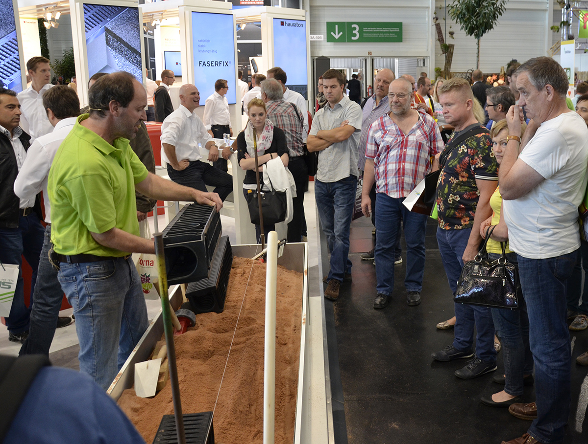 Als Highlight präsentiert HAURATON anlässlich des Branchentreffs ein komplett neues Rinnensortiment für die Fassaden- und Terrassenentwässerung. Damit sind barrierefreie Lösungen nach der DIN 18040 – der Norm für barrierefreies Bauen – leicht realisierbar. Einbau-Profi und Landschaftsgärtner Martin Seidemann stellt am HAURATON-Messestand den Rinneneinbau live vor. Er steht den Standbesuchern für Fragen rund um die Verarbeitung der HAURATON-Produkte und deren Nutzen für Planer und Bauausführende Rede und Antwort.