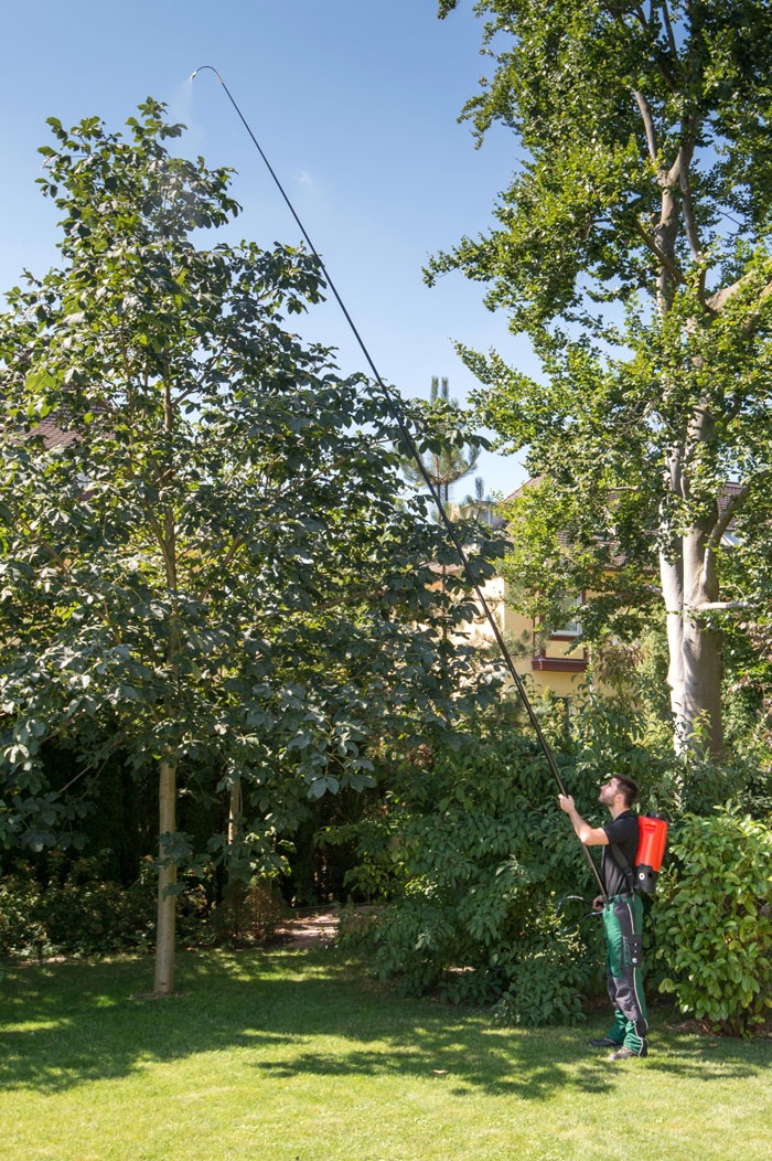 Die Behandlung von Baumkronen in öffentlichen und gewerblichen Grünanlagen sowie Privatgärten ist oft umständlich und teuer, da man Leiter, Hubsteiger oder ein Gerüst benötigt. Mit der Sprühlanze XL8 von Birchmeier kann man Arbeiten in der Höhe nun ganz einfach vom Boden aus erledigen.