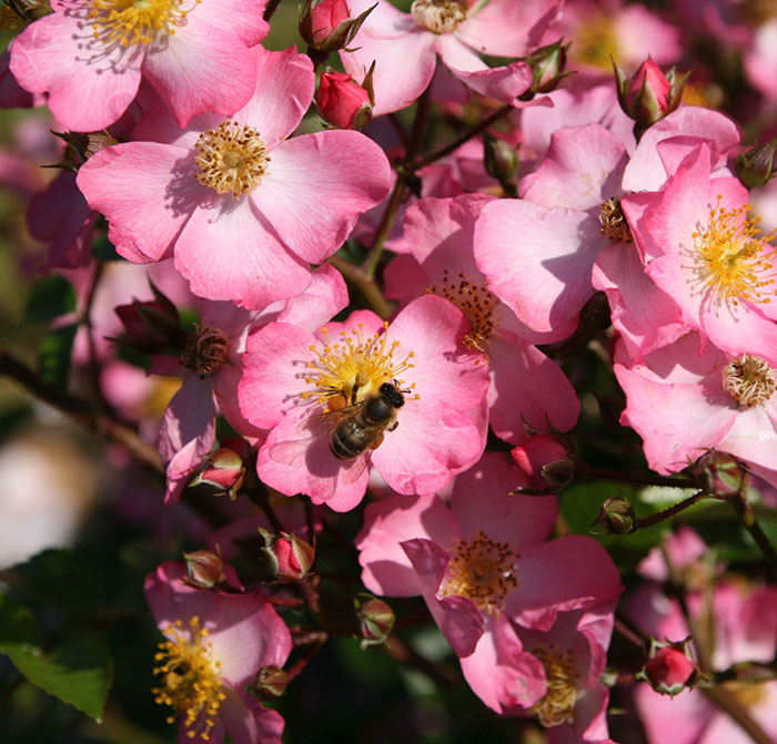 Die neue Nektargarten-Kollektion von Kordes geht sogar noch einen Schritt weiter. Sie besteht aus Rosensorten, die gezielt bestäubende Insekten wie Wildbienen, Hummeln und verschiedene Falter ins Beet lockt. Nektargarten - das sind sechs etablierte und bewährte Kleinstrauchrosen und Bodendecker. Alle diese Sorten weisen das ADR-Siegel auf, das über die Herkunft der Sorten aus dem Züchterhaus Kordes hinaus ein zusätzliches Qualitätsversprechen bedeutet.