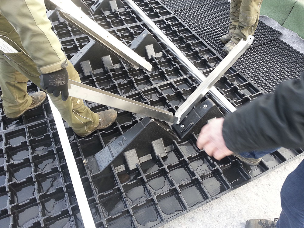 Um auch Modulneigungen von 15° und damit engere Reihenabstände zu ermöglichen, haben die Anwendungstechniker der Optigrün international AG die schon länger erfolgreich eingesetzte Systemlösung „SolarGrünDach“ mit der neu entwickelten Photovoltaik-Aufständerung „Sun Root 15“ ergänzt. Durch mehr Module pro Fläche steigt die erzielbare Leistung (kWp) und damit die Rentabilität des Systems.