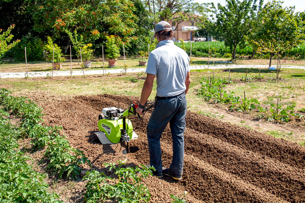 Leistung auf höchstem Niveau, auch bei härtester Arbeit. So definiert Grillo maximale Robustheit bei größte Wendigkeit! Mit 5,5 kW-Motor; Arbeitsbreite 72 cm bis 99 cm (erweiterbar auf 125 cm); mit drei Vorwärtsgängen, einem Rückwärtsgang.