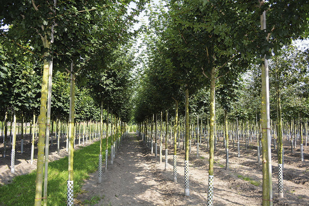 Genau hier setzt das 45-köpfige Team von Marken Pflanzen an. Große Mengen an Freilandware werden im Frühjahr für den Sommereinschlag vorbereitet. Die mehrfach verschulte, hochwertige Ware wird im Frühjahr unterschnitten – verbleibt allerdings am Ursprungsplatz. Die Pflanzen bilden frische Wurzeln und bekommen ausreichend Wasser für die Grünerhaltung der Blätter, bilden aber keine kraftkostenden, neuen Triebe. Bis Ende Juni kann die auf diese Weise präparierte Ware für die Kunden zur Verfügung gestellt werden. Je nach Witterung und Kultur kann sogar Versand im Juli und August erfolgen. Diese Versandoption bietet Marken für viele Kulturen wie Solitäre und Hochstämme mit bis zu 20-25 cm Stammumfang. Gemeinsam mit der Ware aus dem 8 ha großen Containerquartier bietet Marken damit ein umfangreiches Sommerprogramm an Sträuchern, Solitären und Hochstämmen aus dem Freiland, Bonsai im C35, Heckenpflanzen sowie Bodendecker, Rosen und Stauden aus Zukauf.